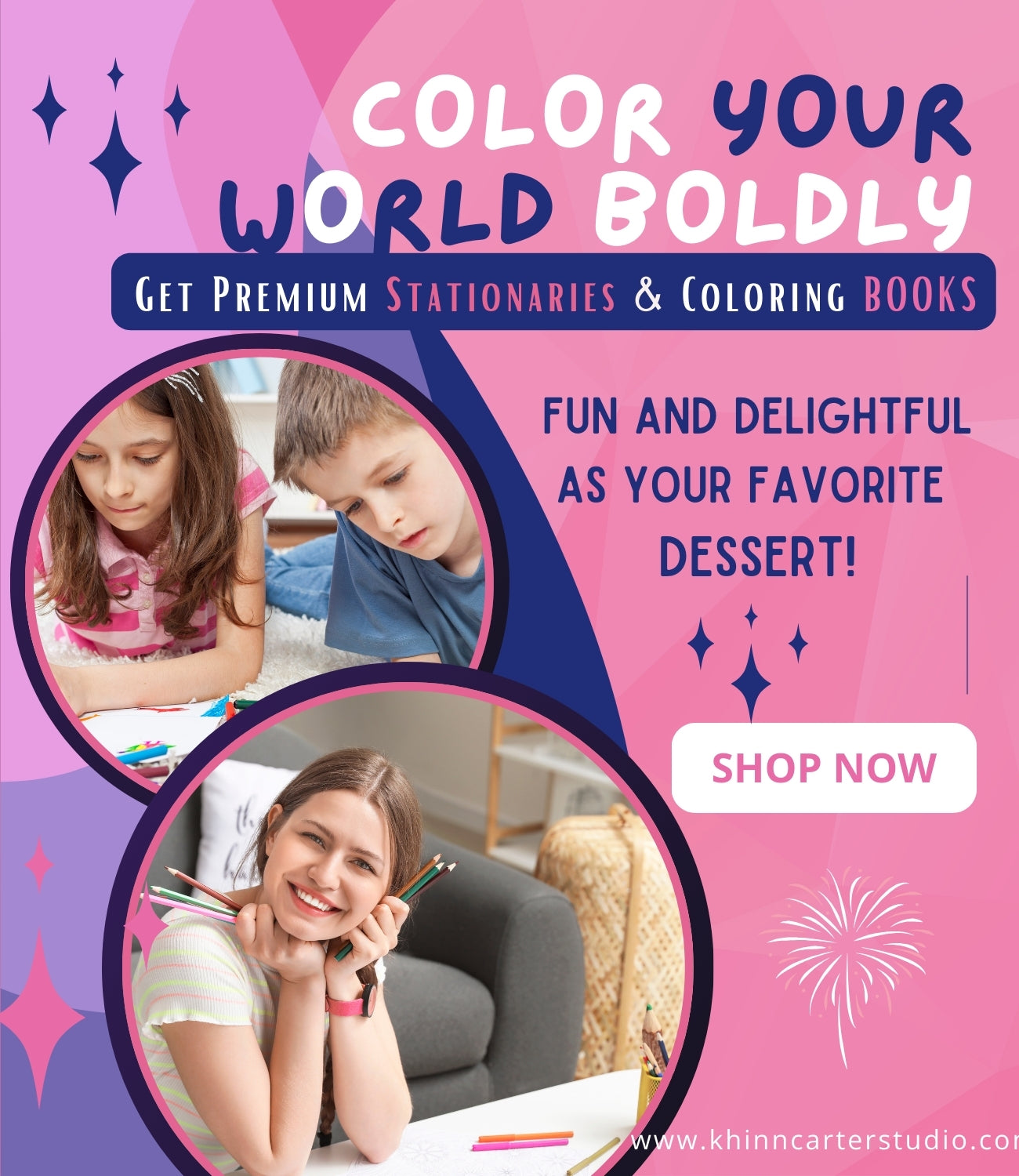 At Khinn Carter Studio, we offer a range of high-quality coloring books and stylish stationery, including notebooks, journals, and planners.